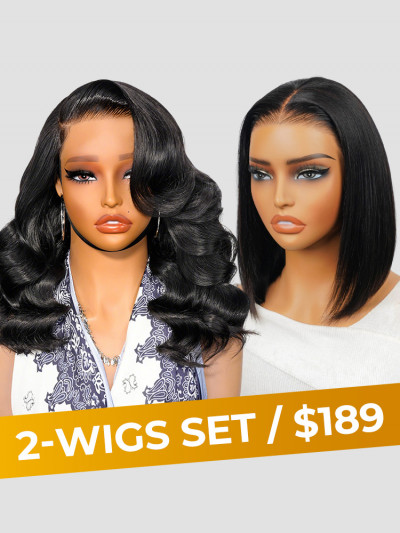 [Set Deal]$189= Layered Body Wave Drawstring Wig+Glueless Straight Bob