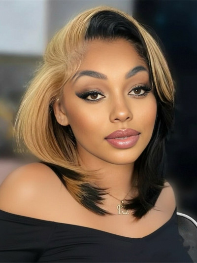 Honey Blonde Face Framing Skunk Stripe Bob 13x4 Lace Ready To Go Wig