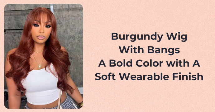 Burgundy wigs with bangs are bold but still quite wearable, as people do not want to look overly fancy but still wish to have some color, depth, and personality. The ground between deep red and wine is good without sharp brightness, and Burgundy provides this. Combined with a bang, the idea becomes less rough and more balanced, making it suitable for daily use. This mix has been attracting consistent interest due to the fact that it is a blend of bright colors and a traditional shape.
