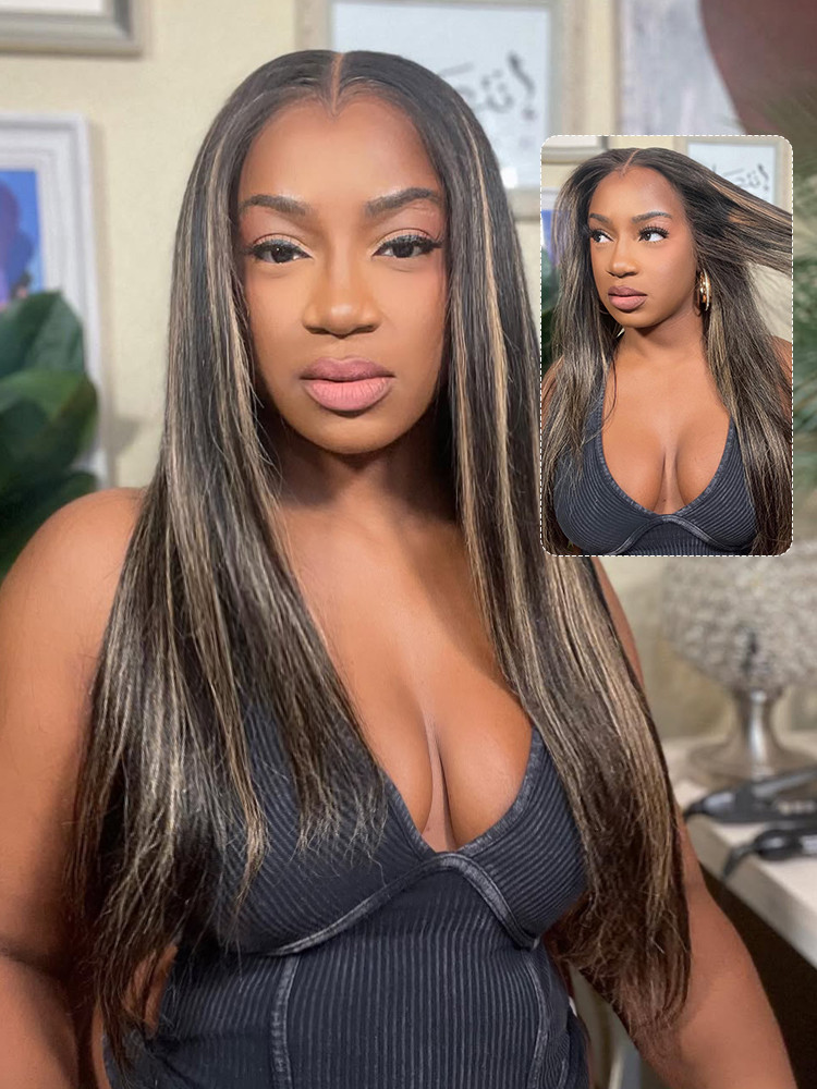 Brown Highlight Braided Straight 13x4 Glueless Lace Wig With Baby Hair